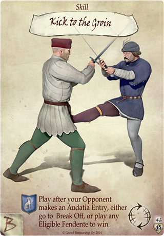 AUDATIA is a card game for two players in which they duel each other with swords. Everything you do in the card game works in real life, and vice versa - blow by blow. The game is an accurate representation of the Fiore school of medieval longsword as taught in the School of European Swordsmanship